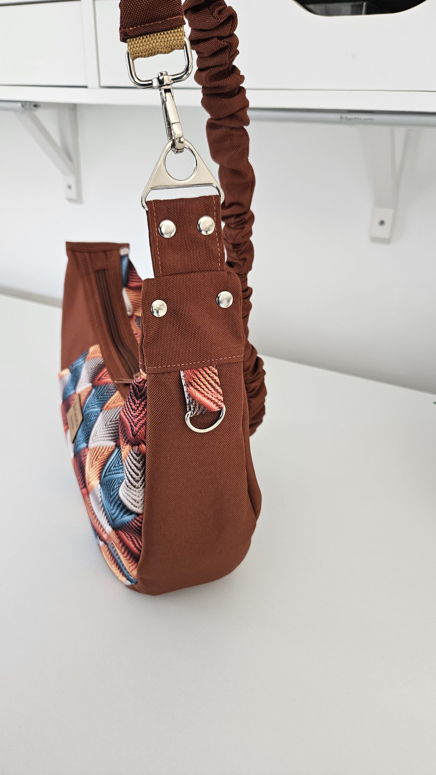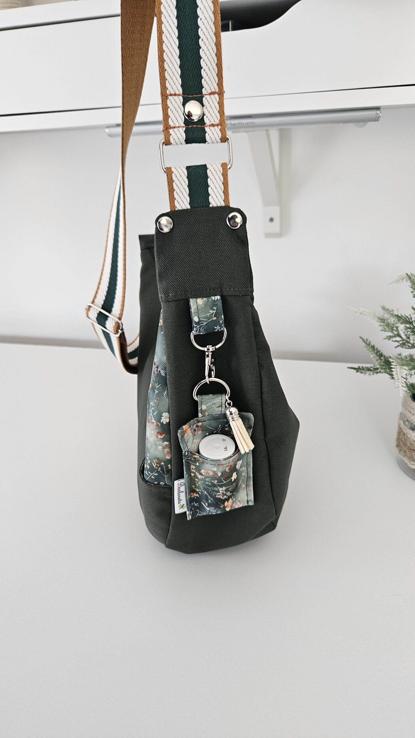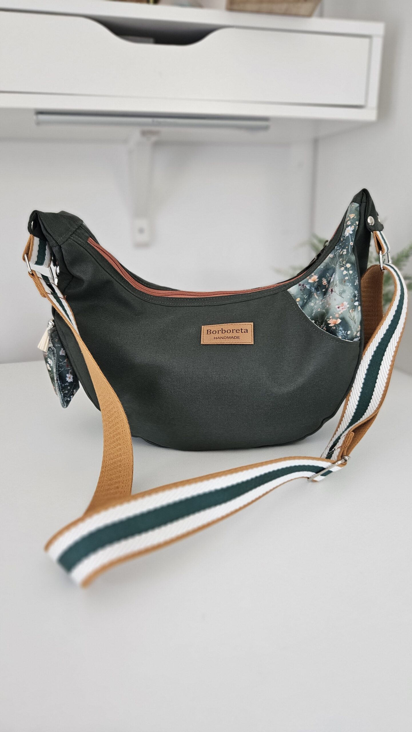 A tua alça, a tua escolha: Alça normal, clássica e funcional (63 euros) — ou alça enfolada (72 euros), feita no próprio nylon da bolsa, para um look mais integrado e sofisticado.